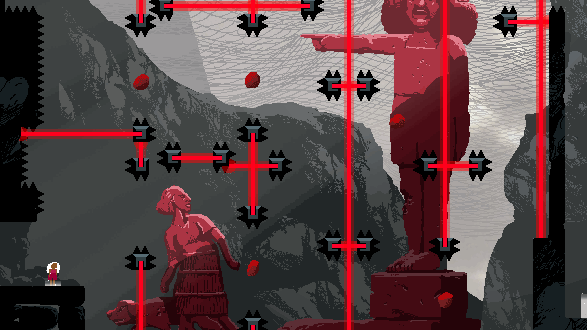 This game combines two genres I never would have guessed would go together: precision platforming and psychological horror. It uses a minimalist pixel art style during gameplay and features various more detailed story scenes throughout the game.